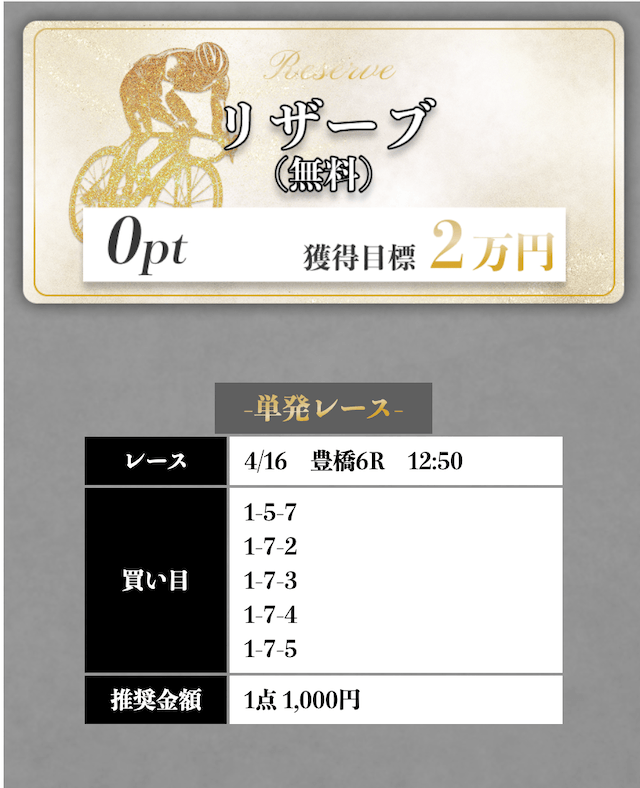 - 有料予想の初回利用時に最大5000pt獲得可能