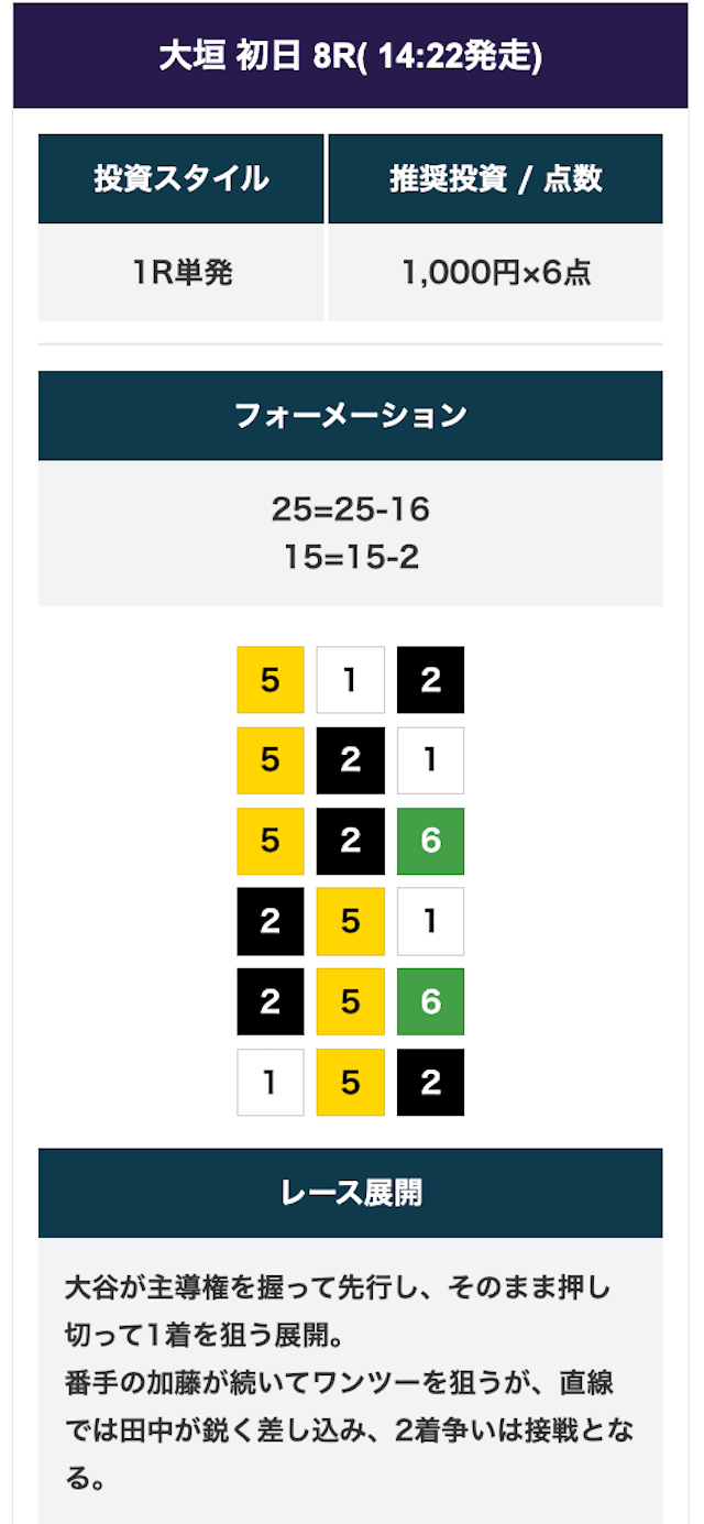 京王閣競輪で連続6レース的中を達成している。