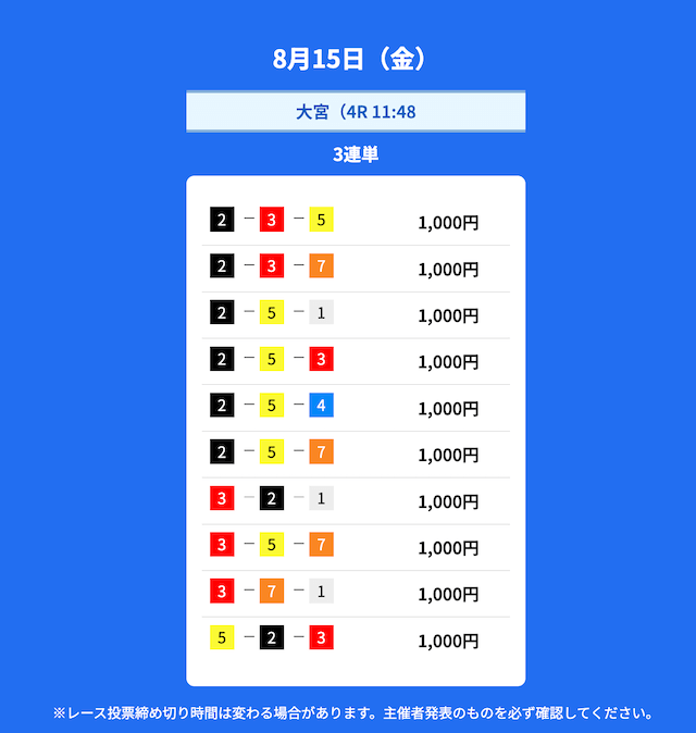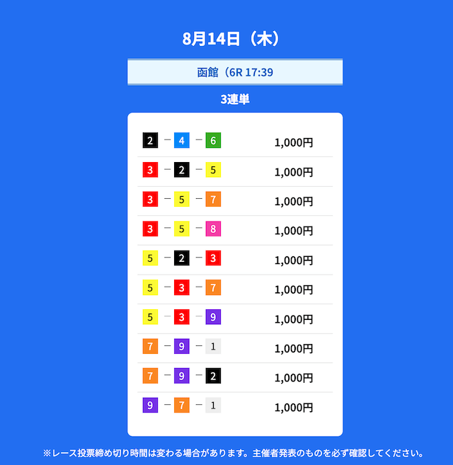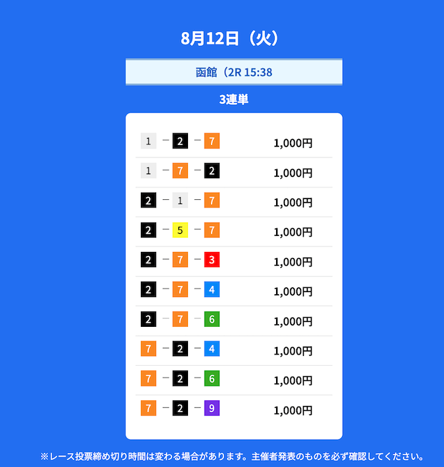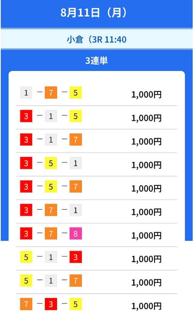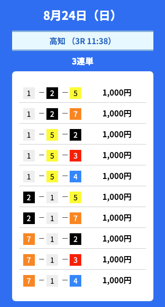 2025年8月の無料予想の成績