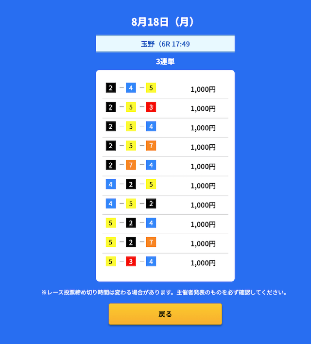 3番車 | 5回 | 100% | 80% |