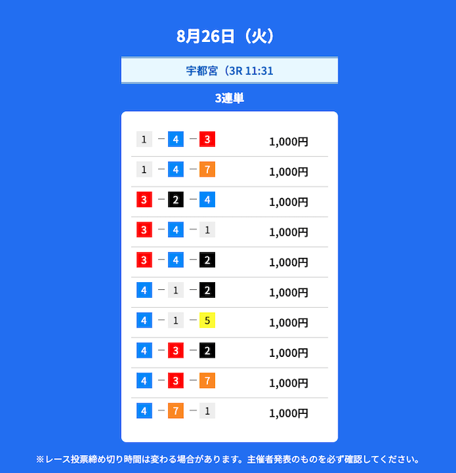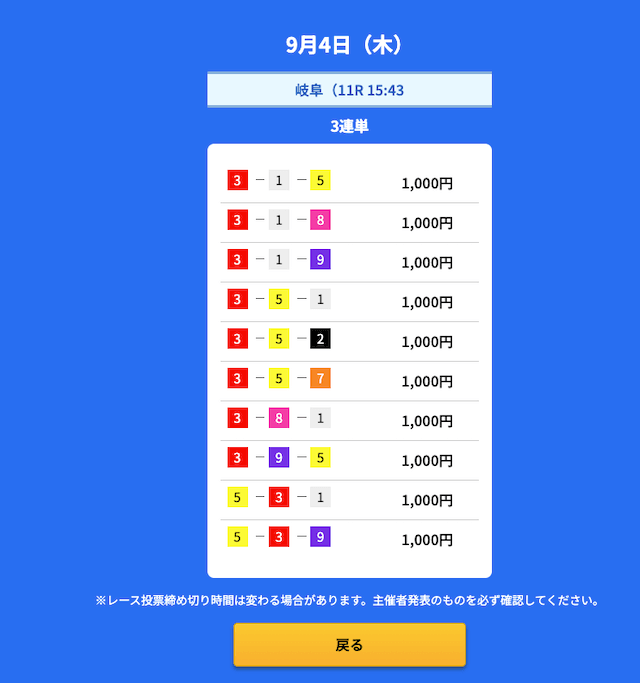 4番車 | 3回 | 100% | 100% |