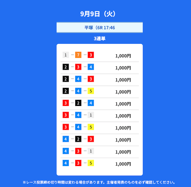 2025/9/9 | 平塚6R 【画像】 |