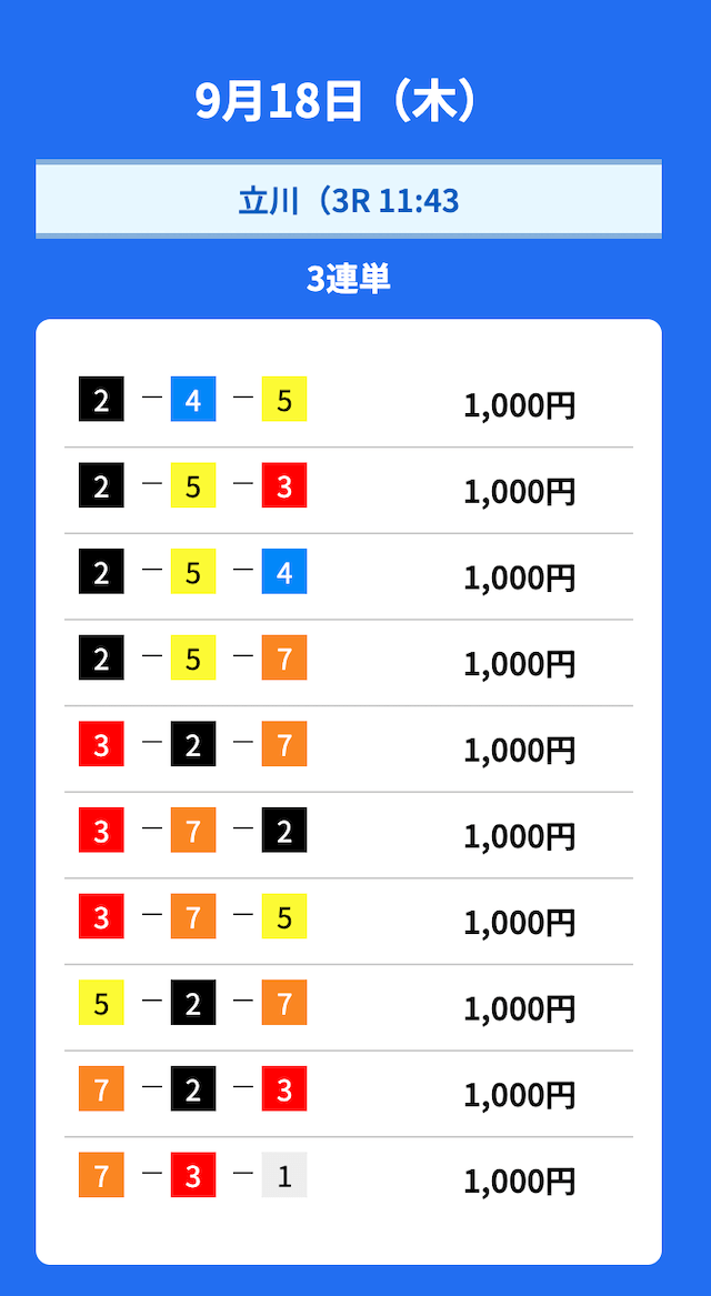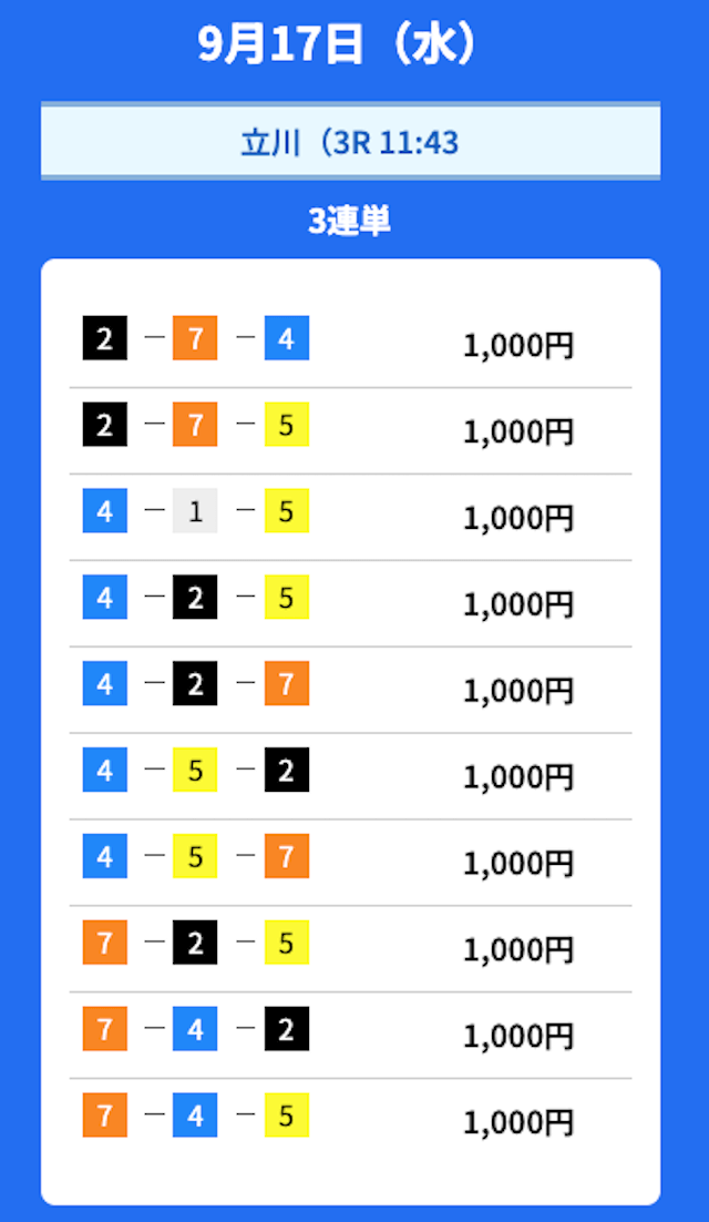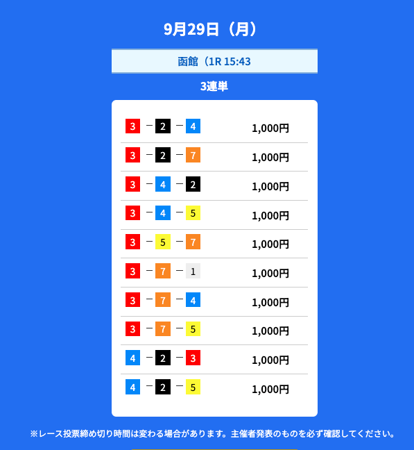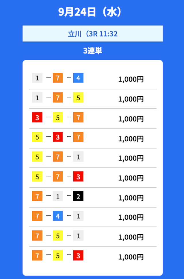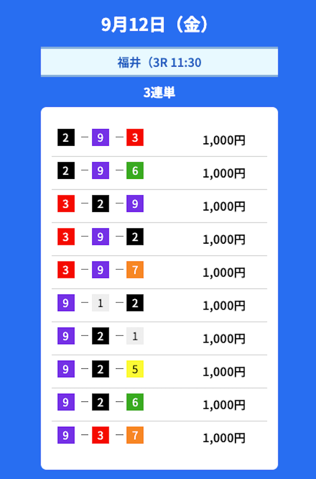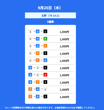 2025年9月の無料予想の成績