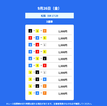 京王閣競輪で連続6レース的中を達成している。