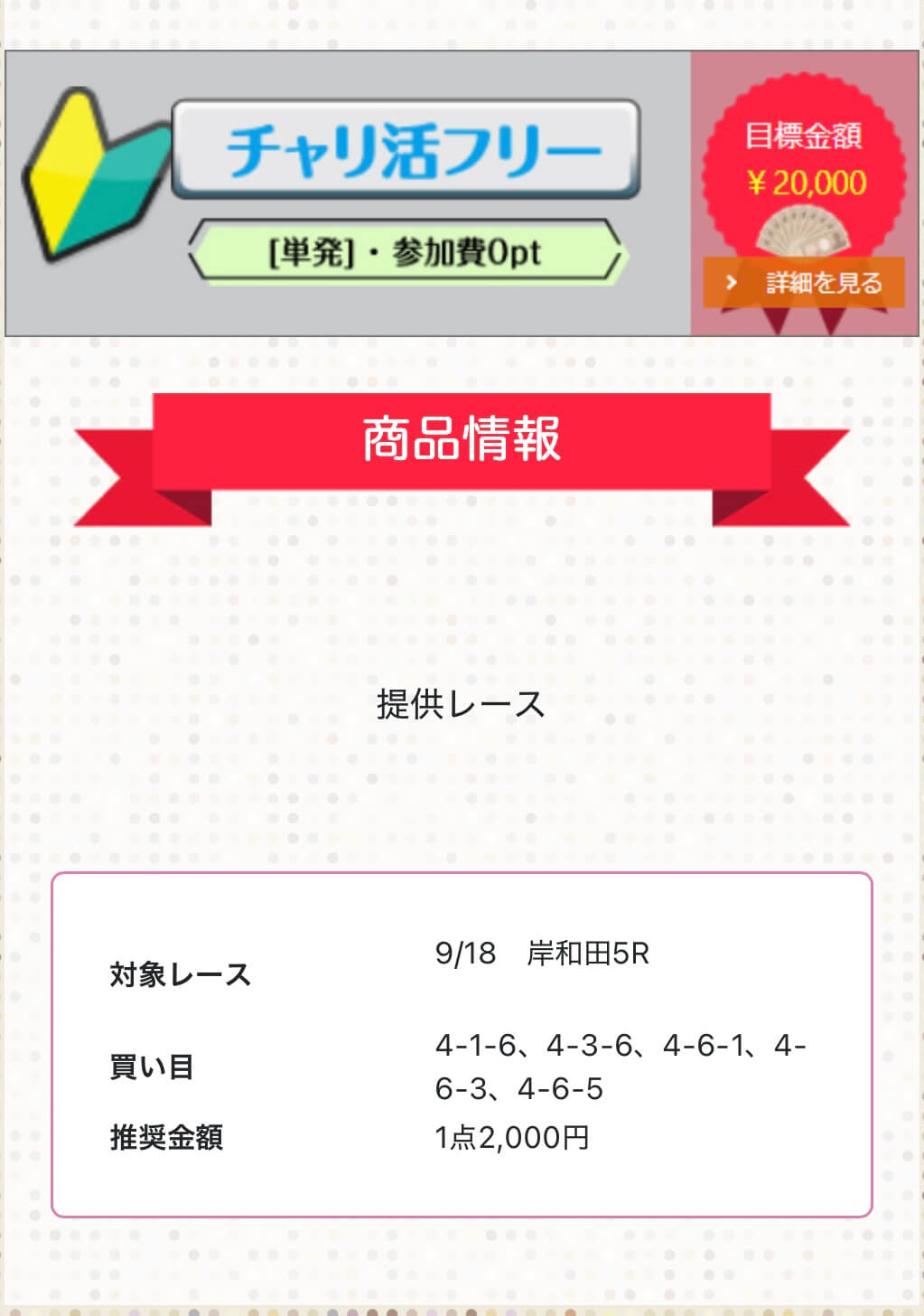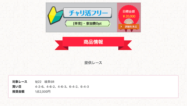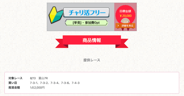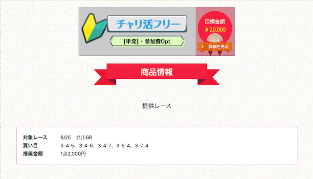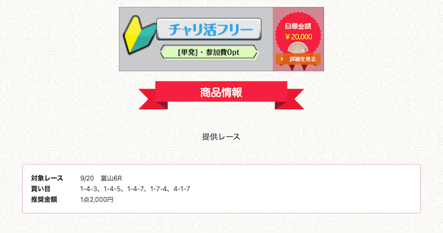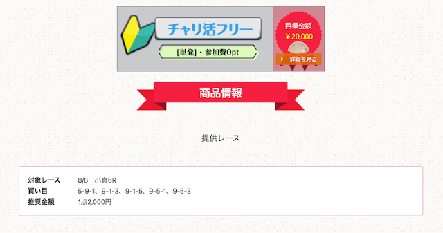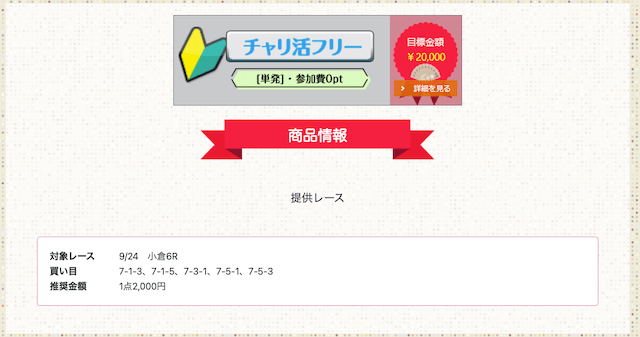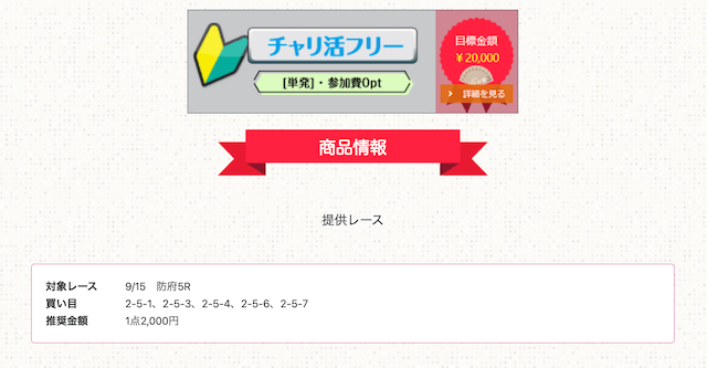 これを確認すれば、単純な無料予想の成績だけでなく、レース選びや条件による結果から、チャリ活が提供する予想の特徴が分かります。