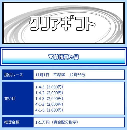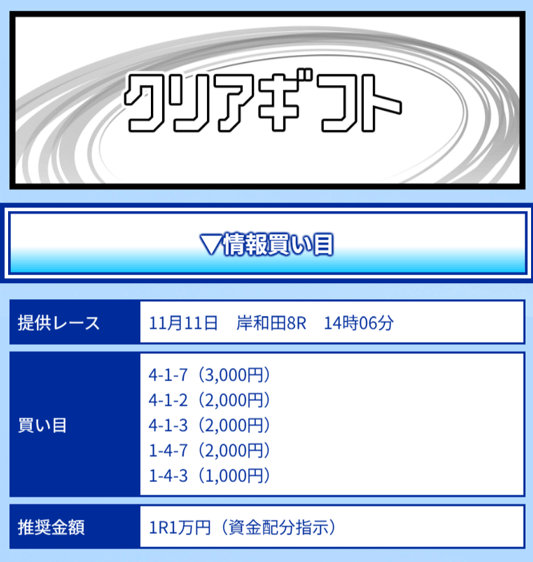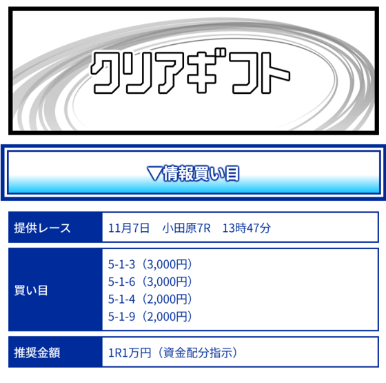 これを確認すれば、単純な無料予想の成績だけでなく、レース選びや条件による結果から、クリアレーサーが提供する予想の特徴が分かります。