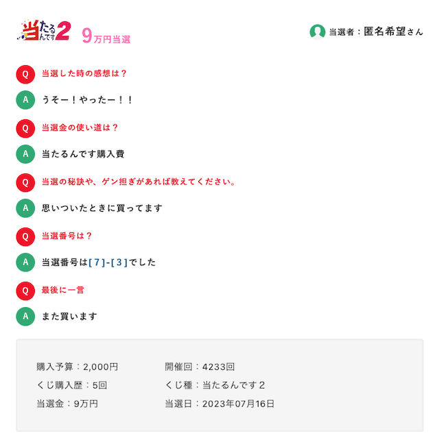 当たるんですは当選者の声として度々ぺージ上に口コミがアップされます。