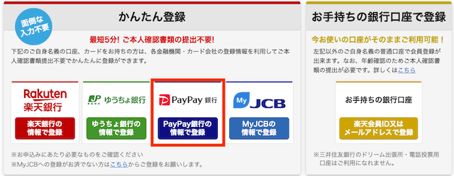 楽天銀行を利用した登録に関しては、先程ご紹介した通常登録よりも簡単です。