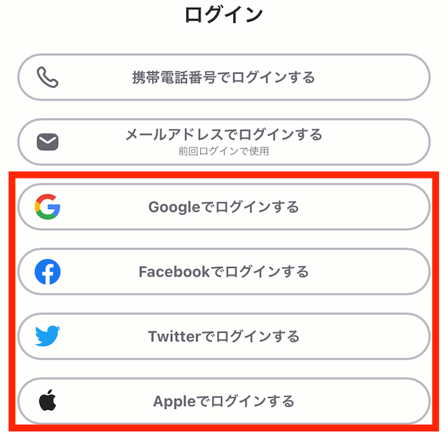 2つ目が別のSNS・ウェブサービスアカウントでログインしたことがある場合です。