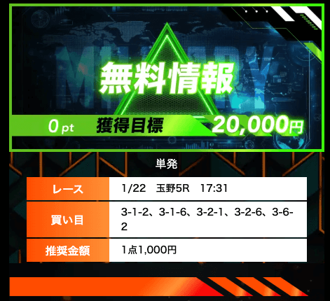 投稿者:Kim3.0無料予想目当てで登録しました。始めはメールアドレスとLINEの両方の登録で困惑しましたが、無事無料予想に参加することができました。結果は4戦3勝と期待以上の結果に。無料で稼げることは分かったので、始めの登録方法さえわかり易ければ完璧です!
