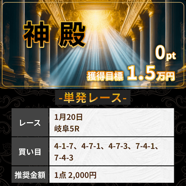 1日3レース無料予想配信では的中率重視、コロガシプランでは回収率を意識した予想が公開されています。大勝ちしたい人にもオススメです!