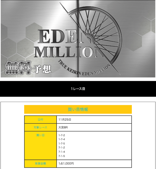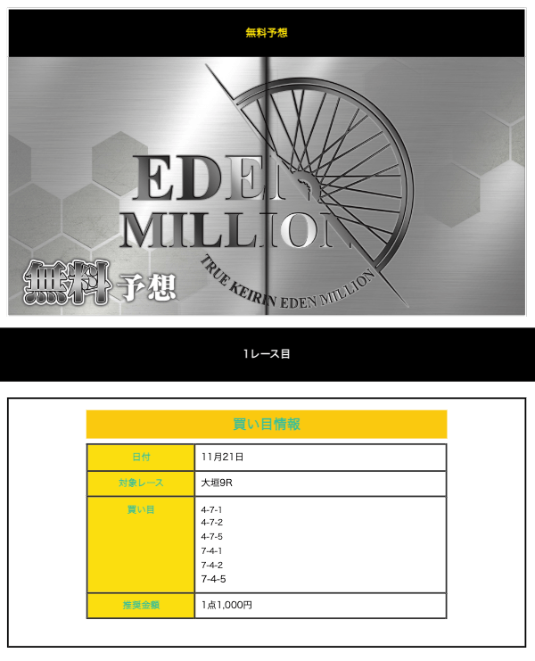 競輪予想サイト解体新書が検証のために参加した、真競輪EDEN MILLIONの無料予想の結果をまとめています。