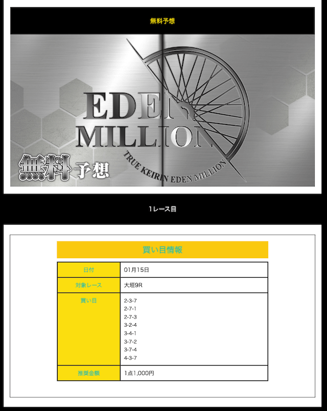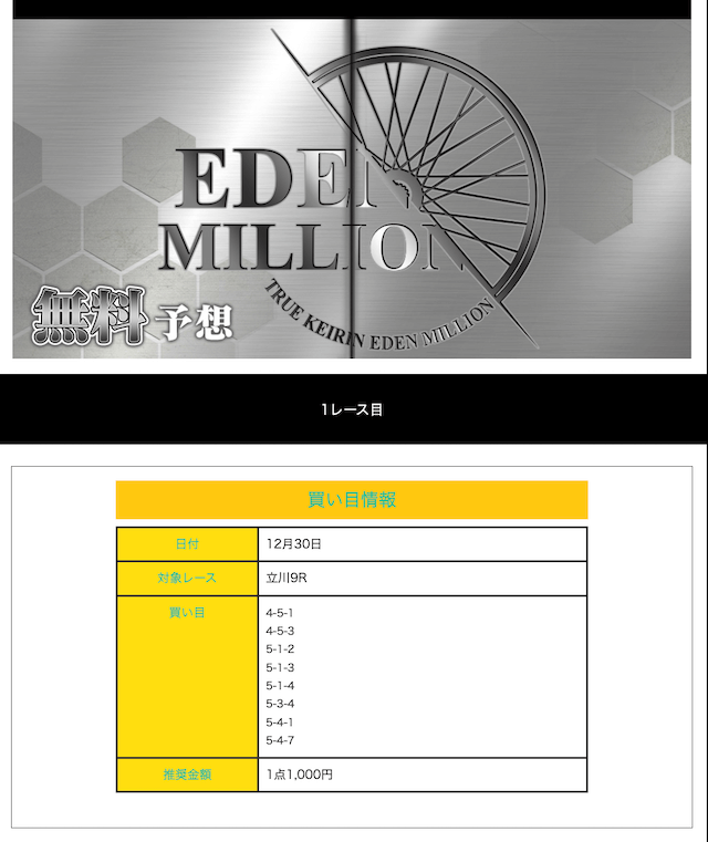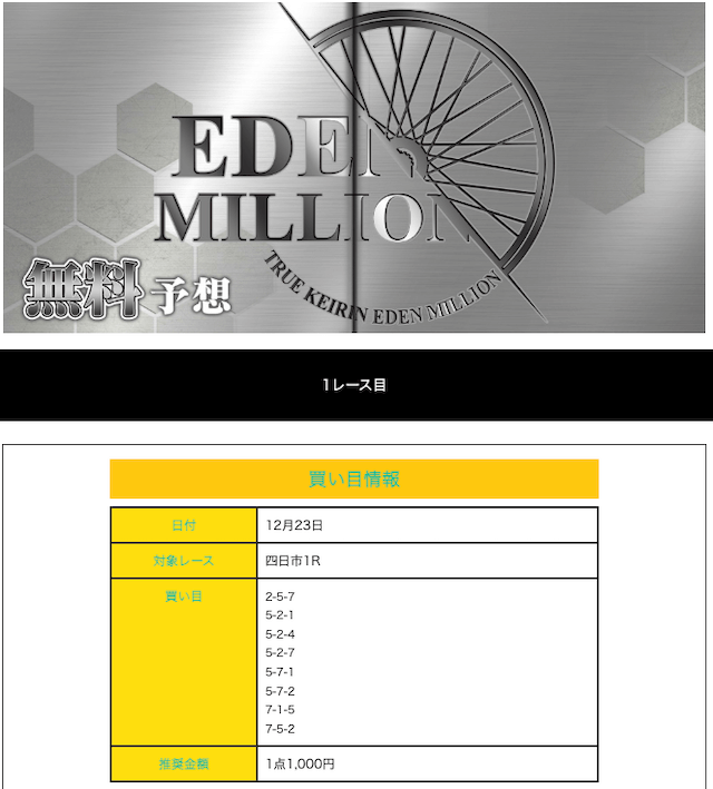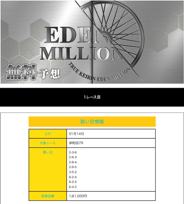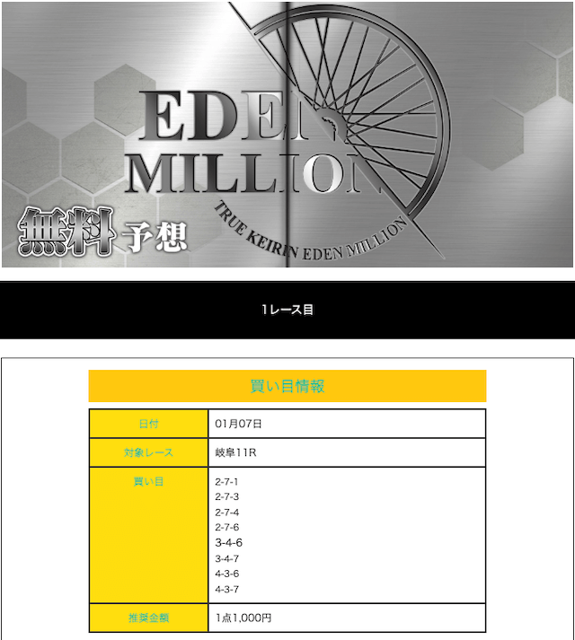 真競輪EDEN MILLIONの無料予想月間成績