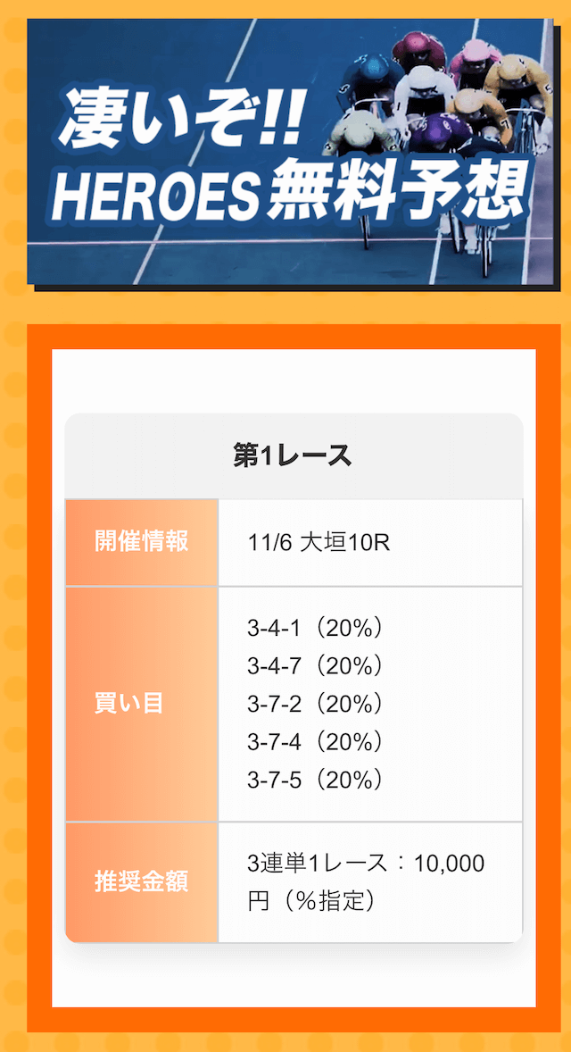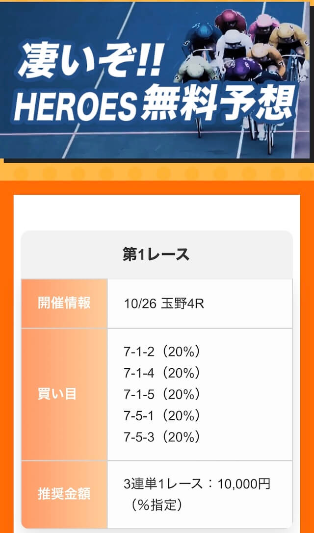 競輪予想サイト解体新書が検証のために参加した、競輪ヒーローズの無料予想の結果をまとめています。