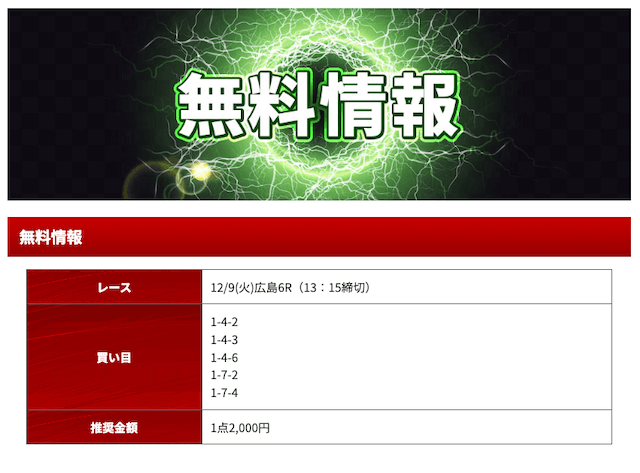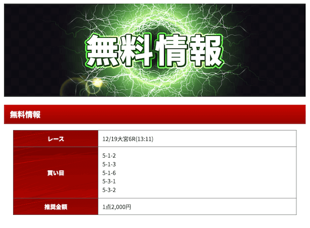 2025年12月の無料予想の成績