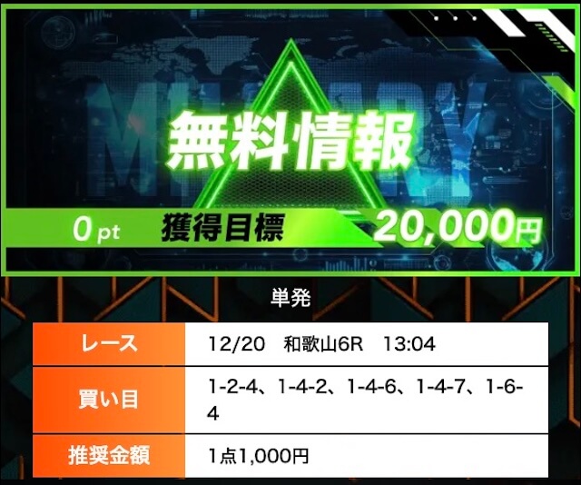 不的中 12月16日 防府6R
