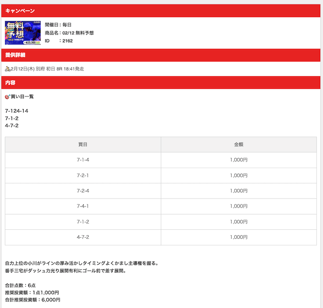 | 的中率 | 75% | 0% | 83.3% | 0% |