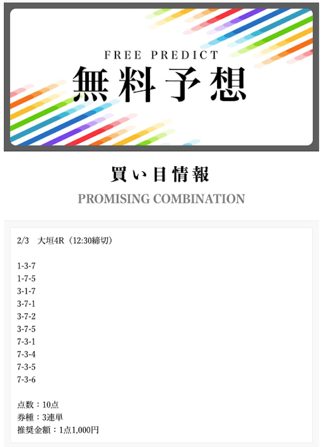 無料予想の通算成績