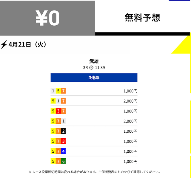 無料予想の通算成績