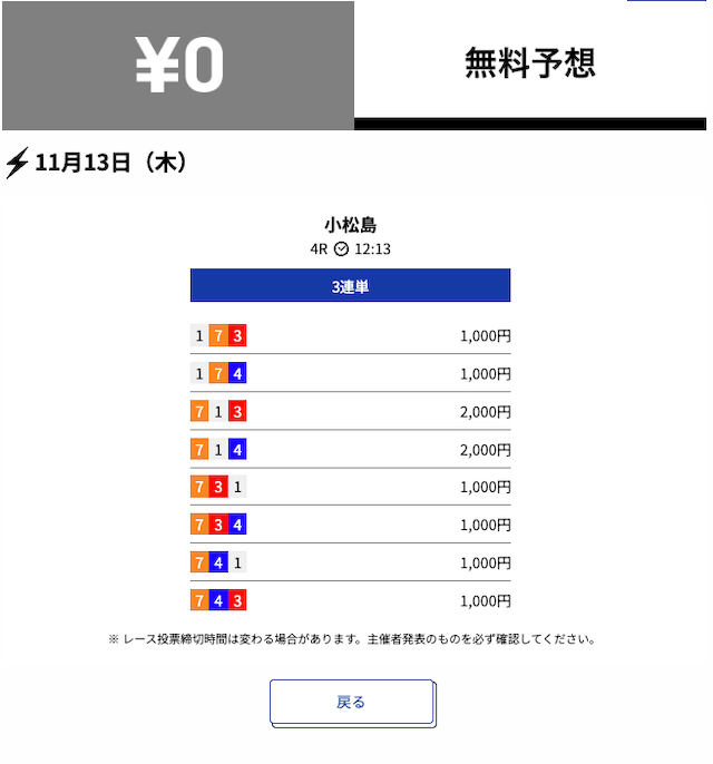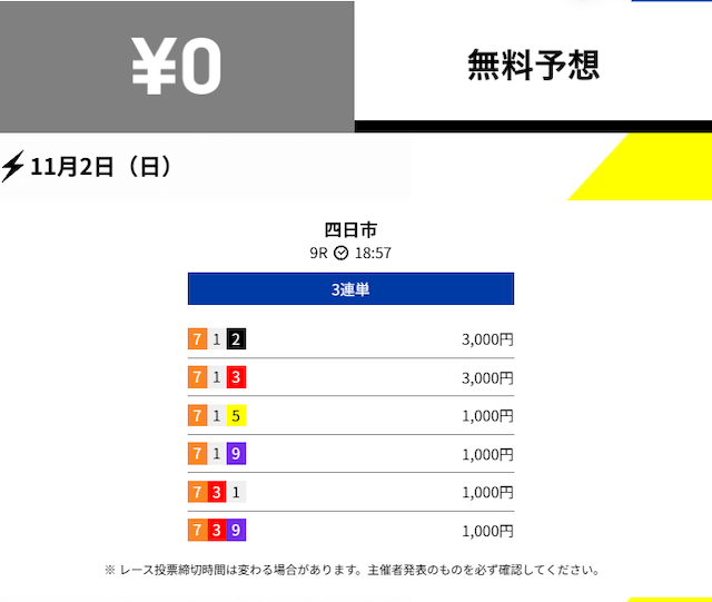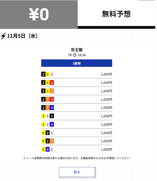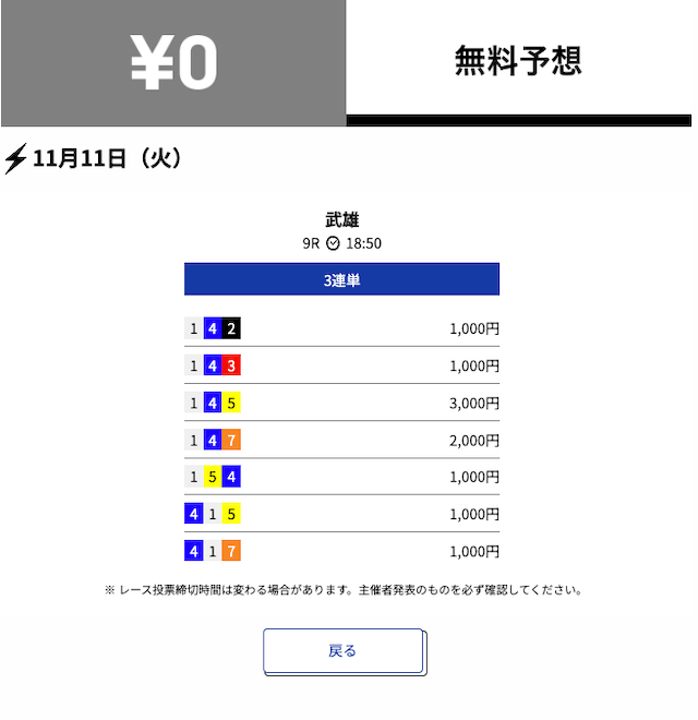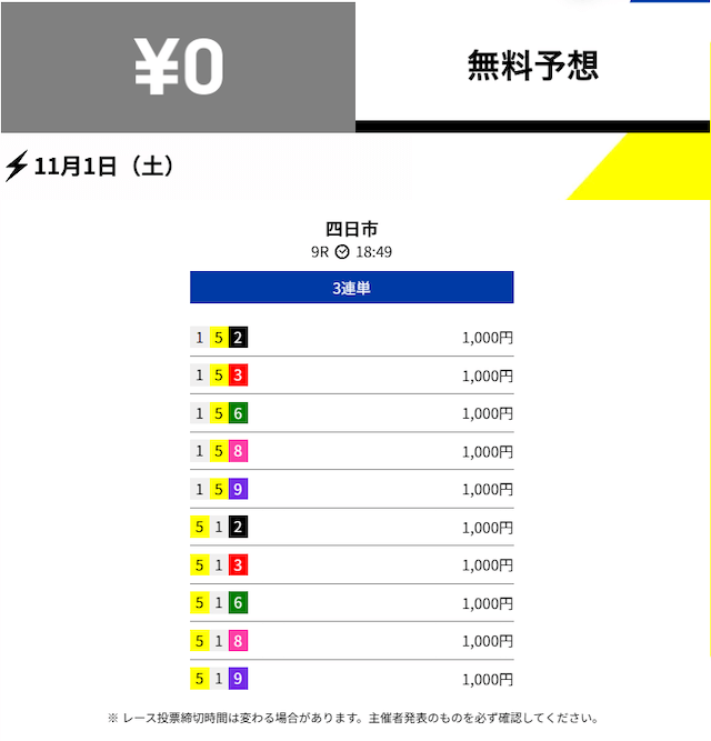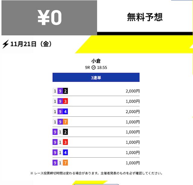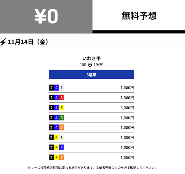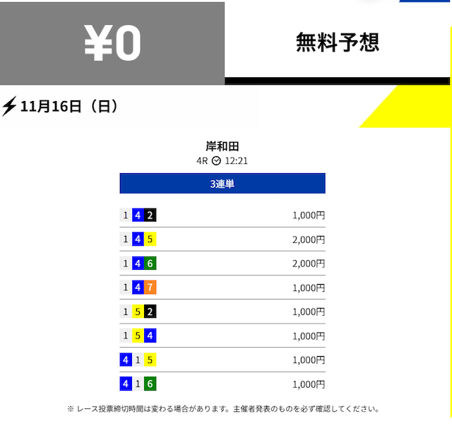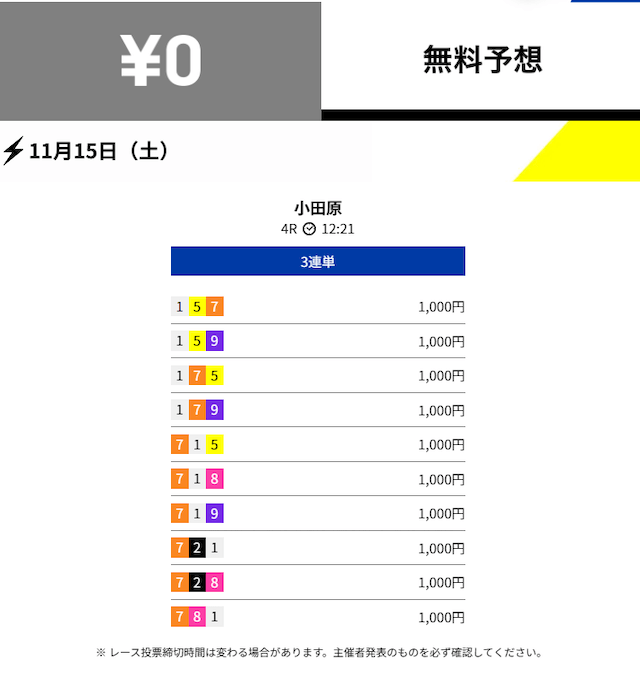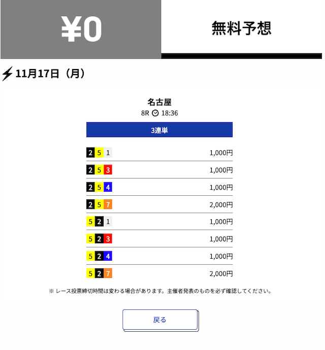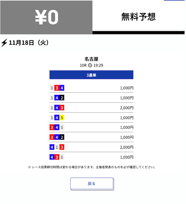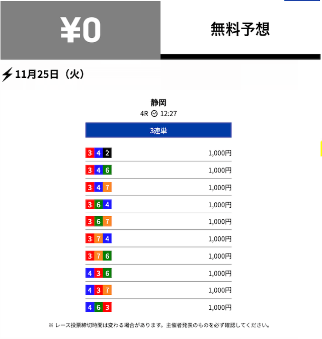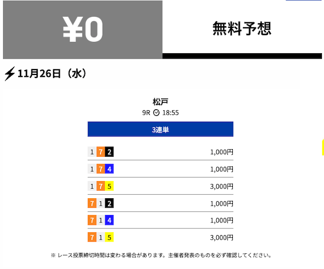 2025年11月の無料予想の成績