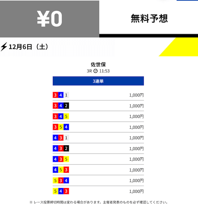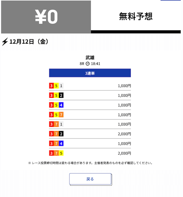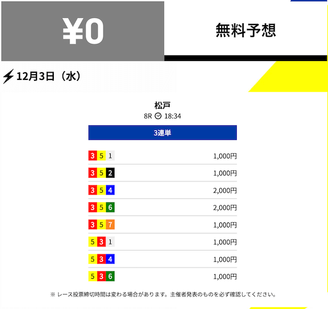 2025年12月の無料予想の成績