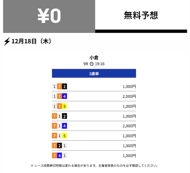 | 戦績 | 18戦16勝2敗 | 的中率 | 88.9% | 回収率 | 195.1% |