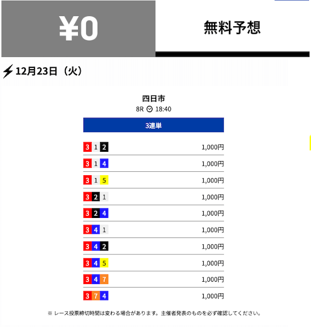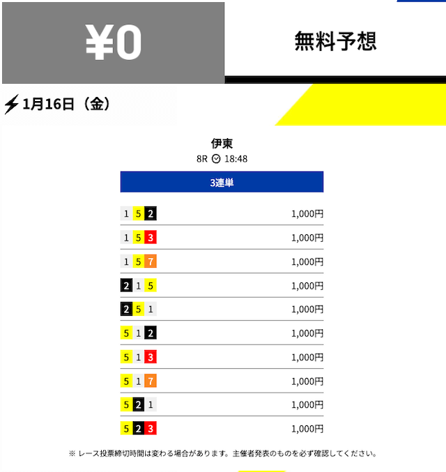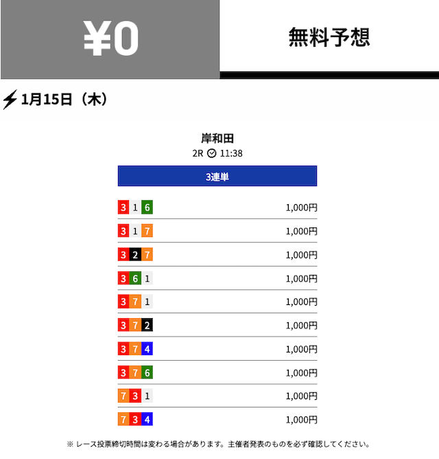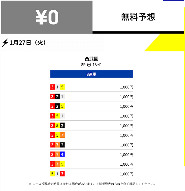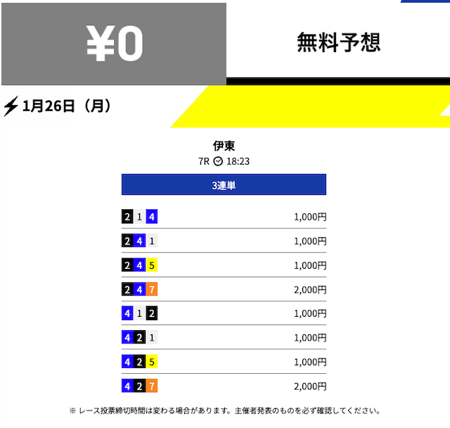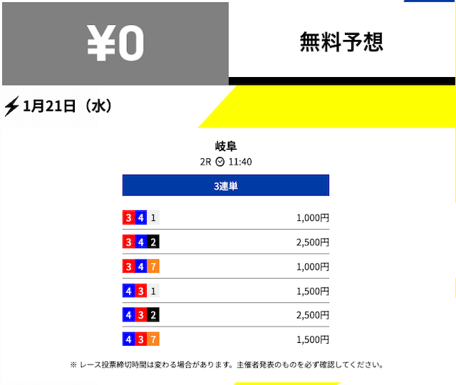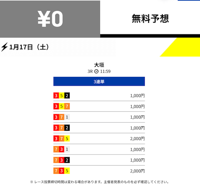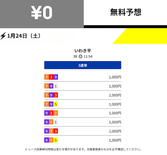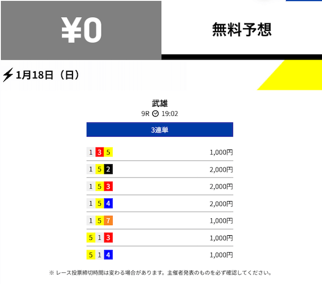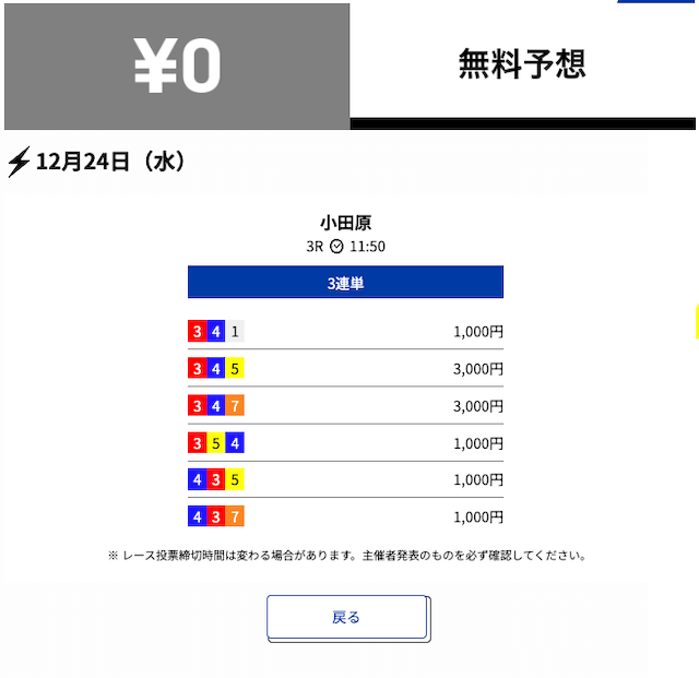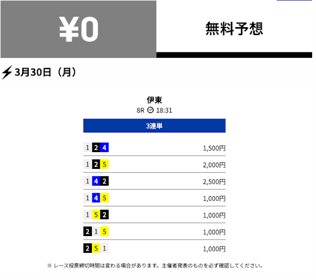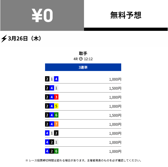 | 弥彦 | 2/3 | 66.7% | 3,000円 |