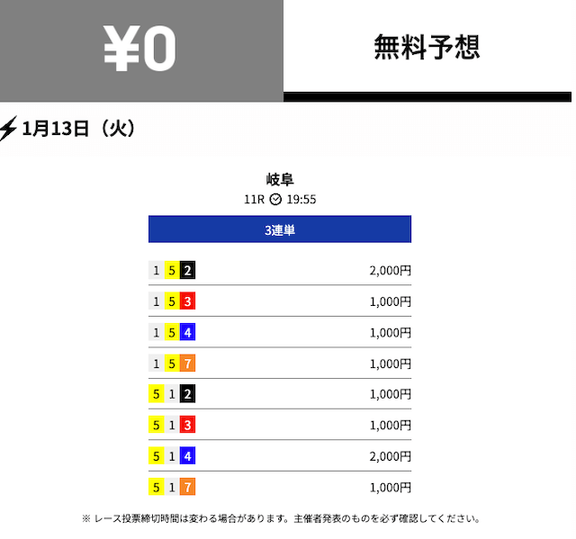 | 2026/1/13 | 岐阜11R 【画像】 |