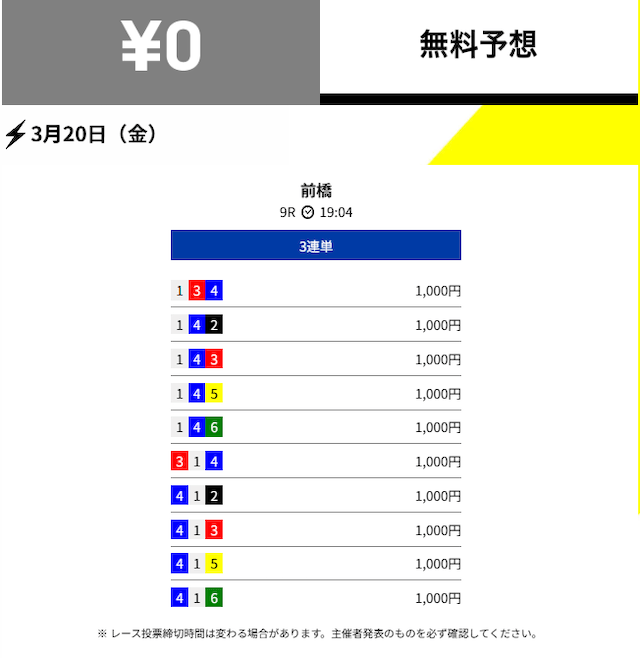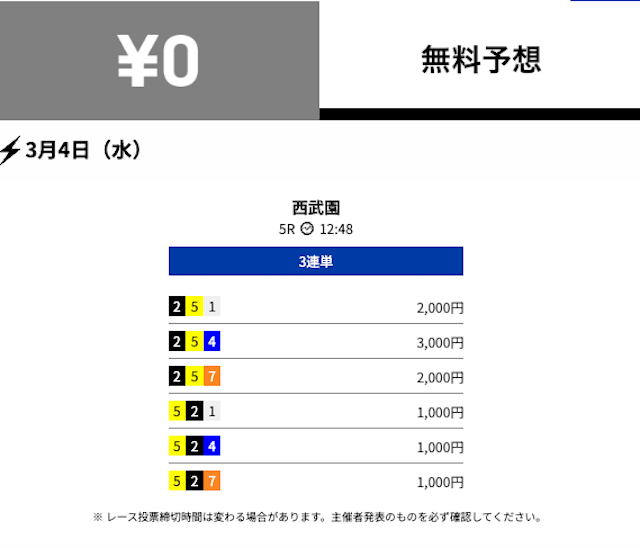 不的中 3月4日 西武園5R