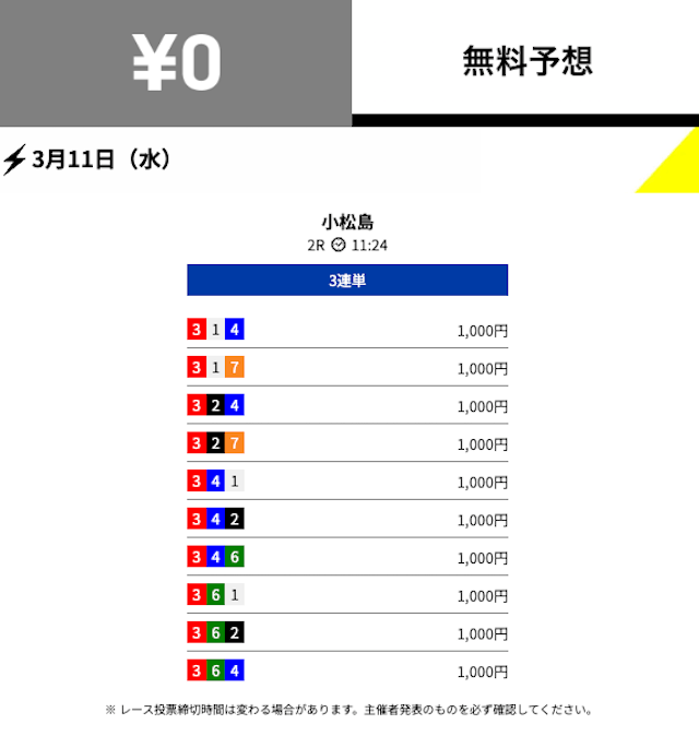 不的中 3月11日 小松島2R