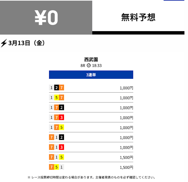 的中 3月13日 西武園8R