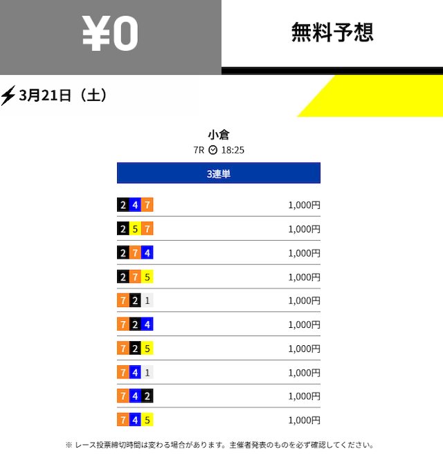 的中 3月21日 小倉7R