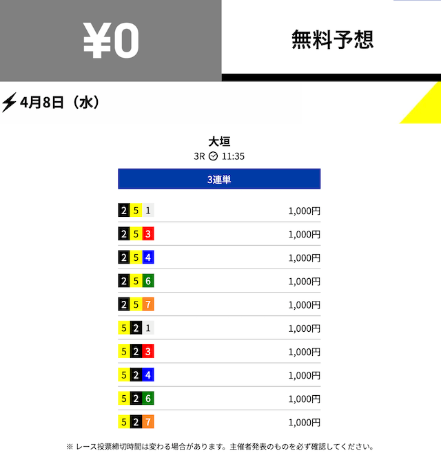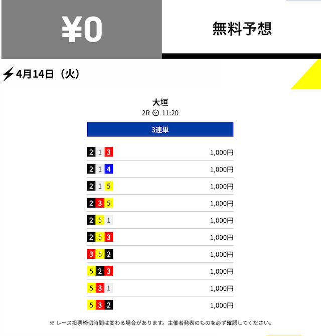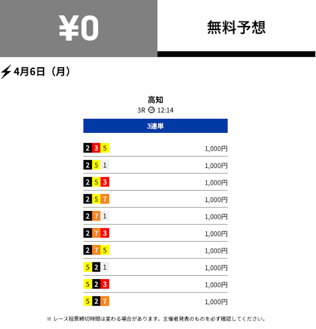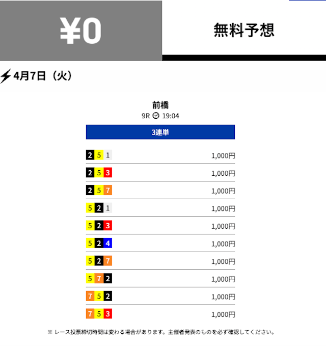 無料予想の通算成績