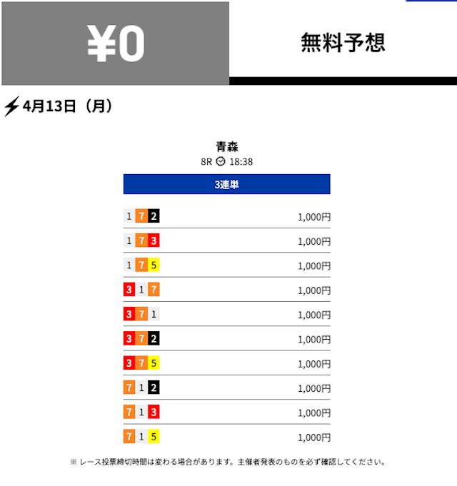 的中 4月13日 青森8R