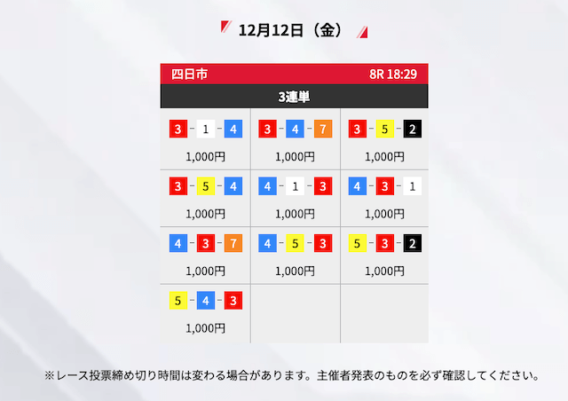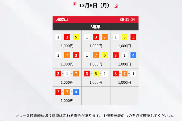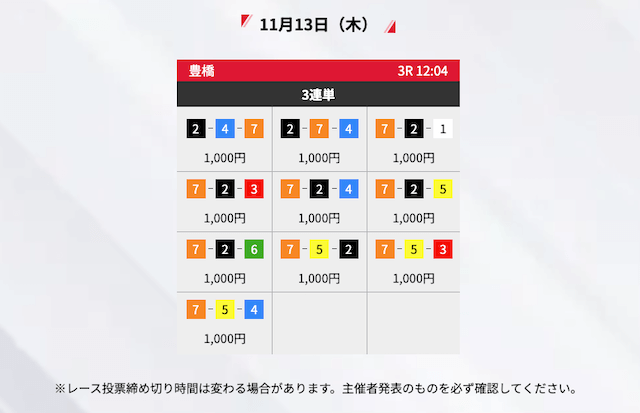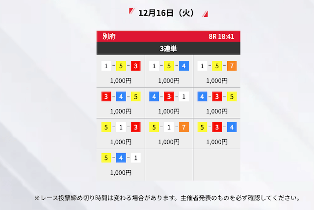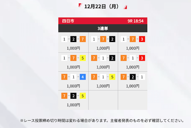 | 3番車 | 8回 | 87.5% | 87.5% |