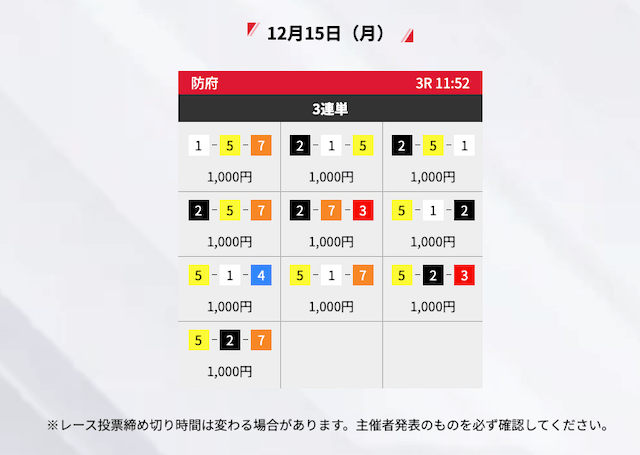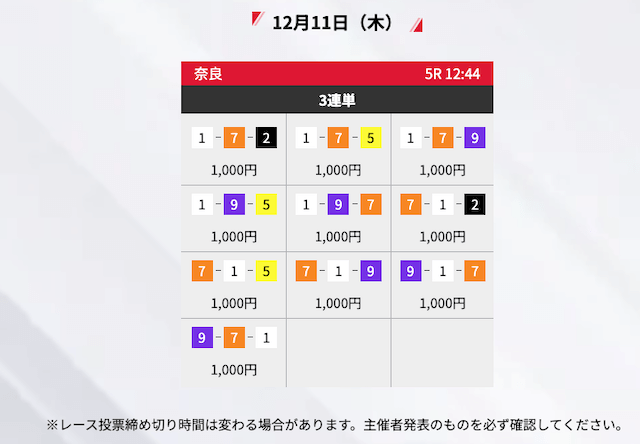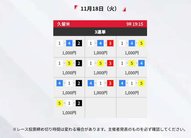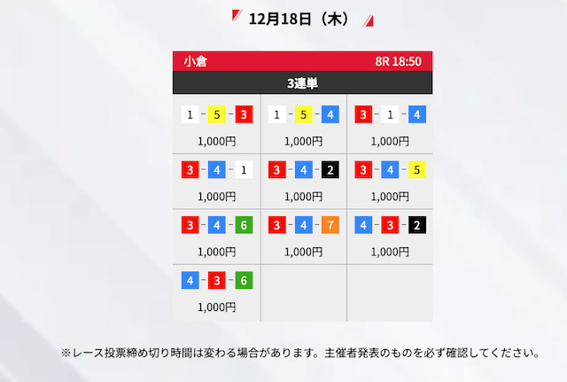 | 1番車 | 18回 | 88.9% | 88.9% |