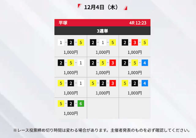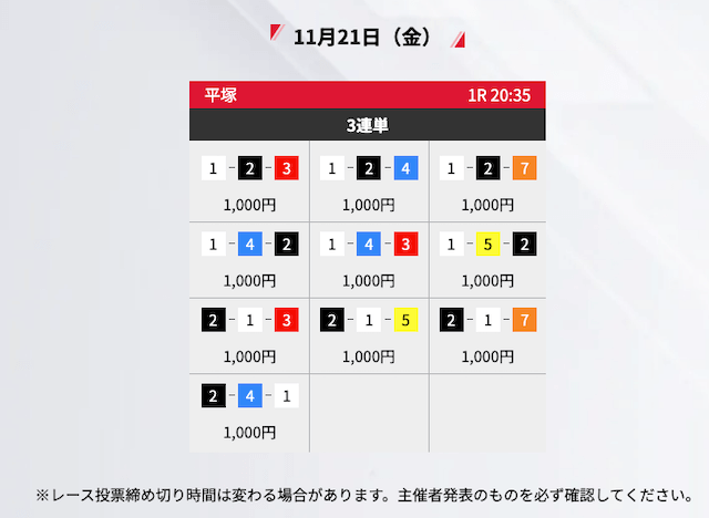 | 平塚 | 3/3 | 100% | 12,400円 |