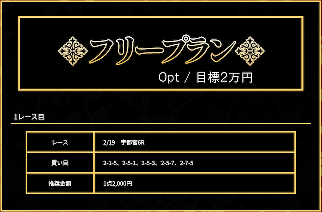 | 戦績 | 12戦9勝3敗 | 的中率 | 75% | 回収率 | 161% |