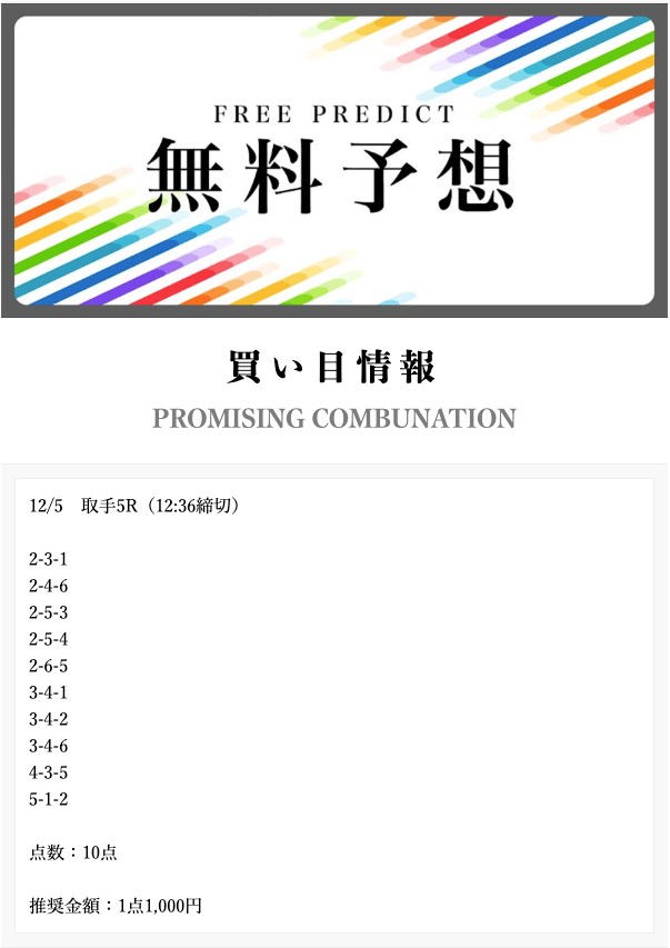 無料予想も提供されているので、まずは登録することをおすすめします!